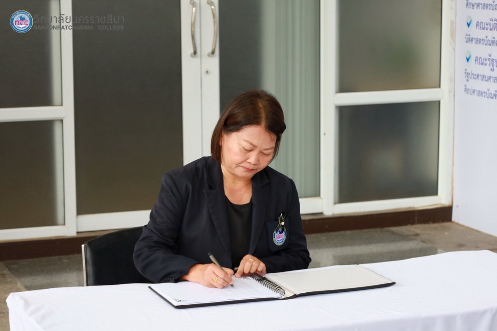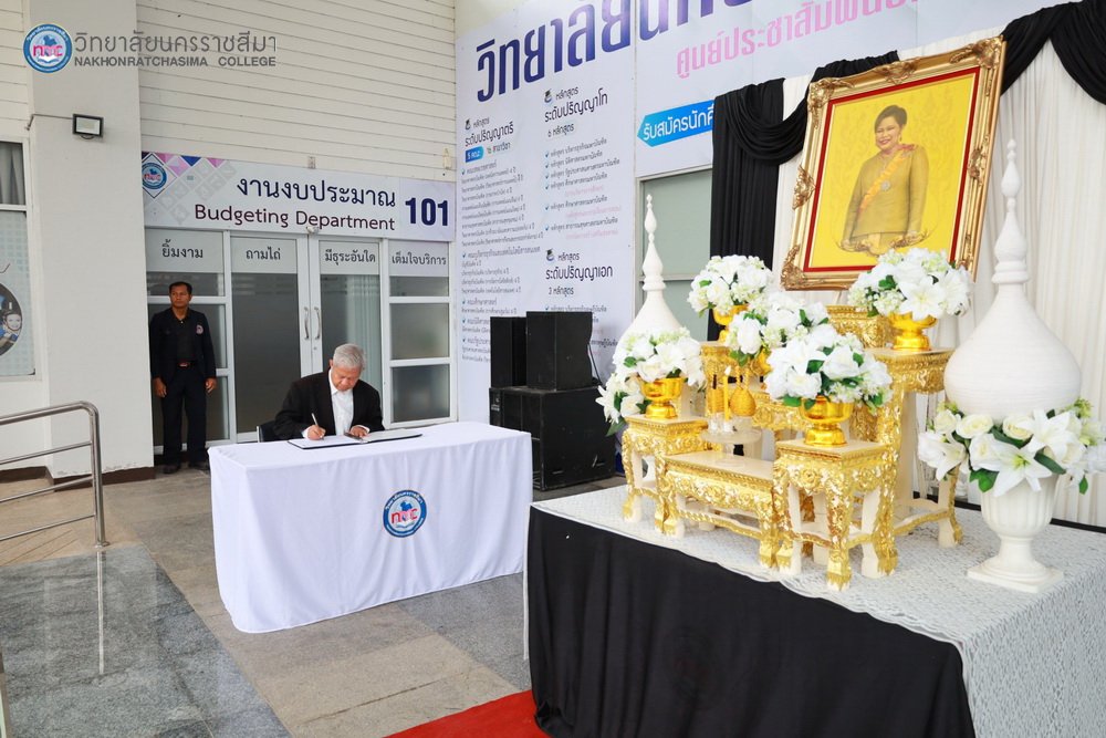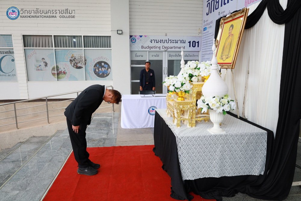 : เมื่อวันศุกร์ที่ 7 พฤศจิกายน พ.ศ. 2568 ท่าน รศ.ดร.วิภาส ทองสุทธิ์ อธิการบดีวิทยาลัยนครราชสีมา พร้อมด้วยคณะผู้บริหาร คณาจารย์ เจ้าหน้าที่ และนักศึกษา เข้าร่วมพิธีถวายความอาลัยแด่สมเด็จพระนางเจ้าสิริกิติ์ พระบรมราชินีนาถ พระบรมราชชนนีพันปีหลวง ซึ่งจัดขึ้น ณ บริเวณหน้าอาคารวิทยาลัยนครราชสีมา