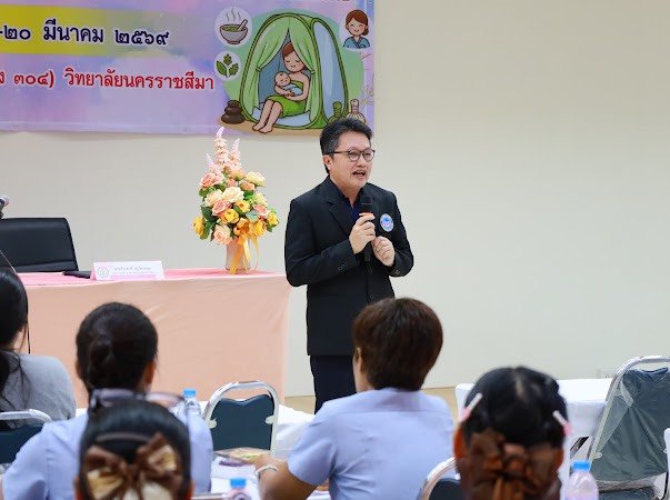 : โครงการอบรมเพิ่มพูนทักษะการดูแลมารดาหลังคลอดด้วยศาสตร์การแพทย์แผนไทย ระหว่างวันที่ 19–20 มีนาคม 2569 ณ ห้องประชุมชั้น 3 วิทยาลัยนครราชสีมา ได้รับเกียรติจากท่านวีระชาติ ทุ่งไผ่แหลม รองนายกองค์การบริหารส่วนจังหวัดนครราชสีมา เป็นประธานในพิธีเปิด