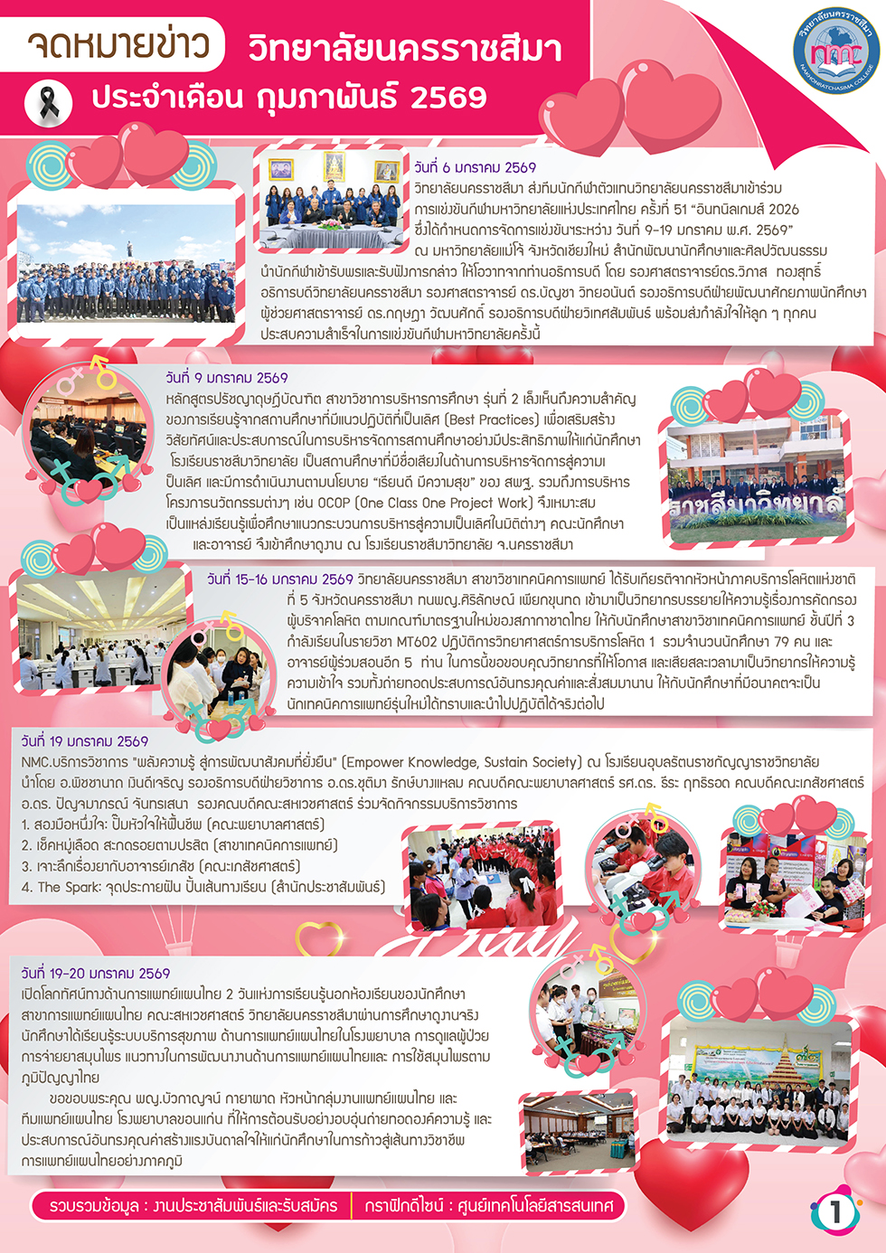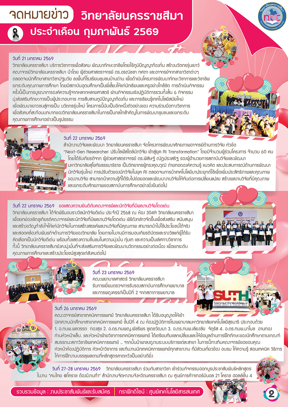 วันที่ 5 กุมภาพันธ์ 2569 วิทยาลัยนครราชสีมาได้ลงนามข้อตกลงความร่วมมือทางวิชาการ วิจัย บริการวิชาการ และแหล่ง